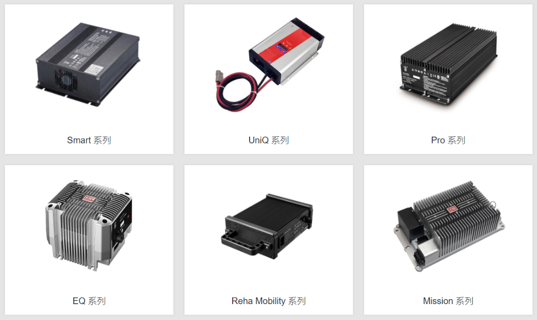 除此之外的主要標(biāo)準(zhǔn)品充電器有7大系列:Smart系列、UniQ系列、Pro系列、 EQ系列、Reha系列、Mission系列和N系列,全面覆蓋工程機(jī)械、高空作業(yè)平臺,環(huán)衛(wèi)清潔車、洗地機(jī)、掃地機(jī)、AGV、機(jī)器人、輪椅、代步車、觀光車、物流叉車、園藝護(hù)理設(shè)備、農(nóng)用機(jī)械、機(jī)場地勤設(shè)備等領(lǐng)域以電池為動力的設(shè)備和低速車的充電。