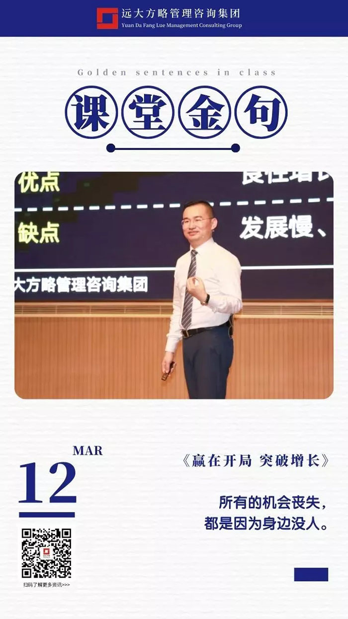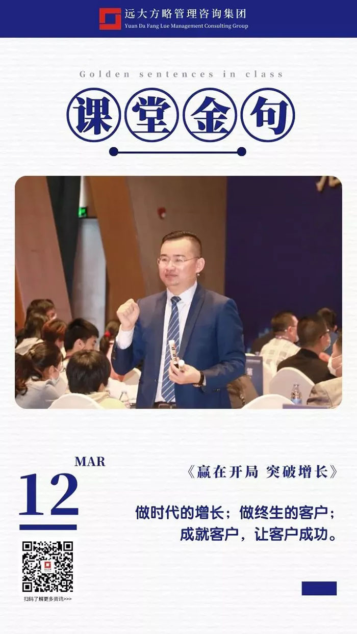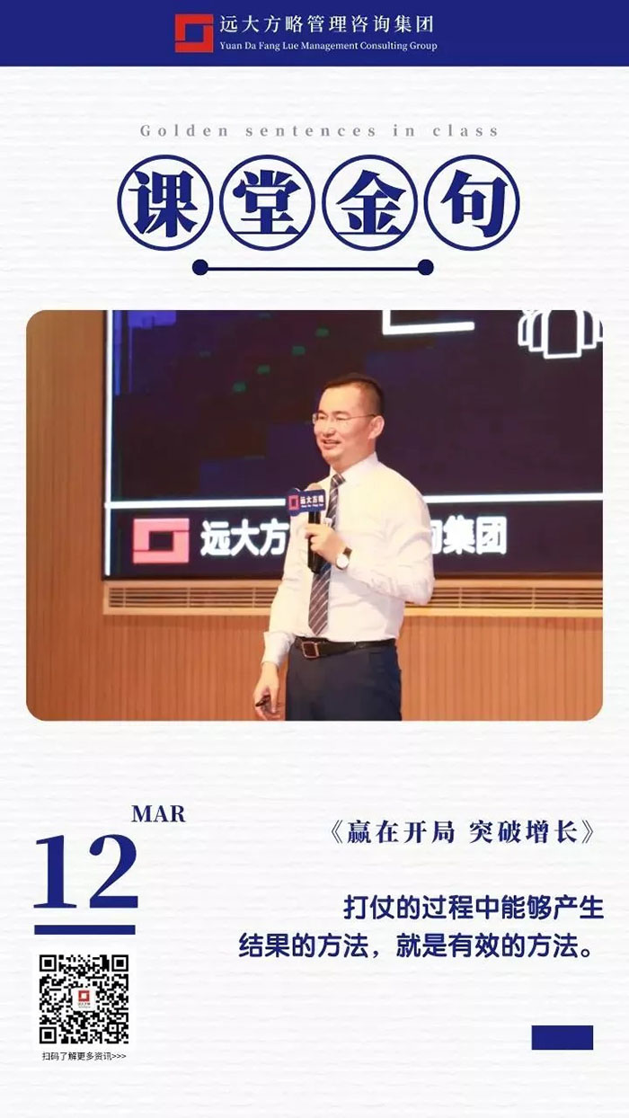 課堂上雷老師講課循序漸進(jìn),通過問題的形式逐步引發(fā)學(xué)員的思考,讓每位學(xué)員都能有所感有所悟,回到企業(yè)之后能夠落到實處,做到真正的幫企業(yè)解決問題,這也正是遠(yuǎn)大方略的定位,成為中國實體企業(yè)實效的持續(xù)增長方案解決商,遠(yuǎn)大方略也一直秉承初心努力踐行!