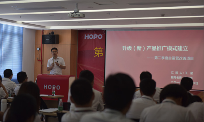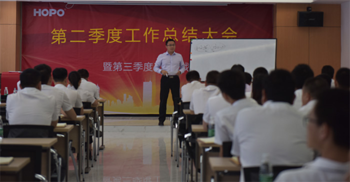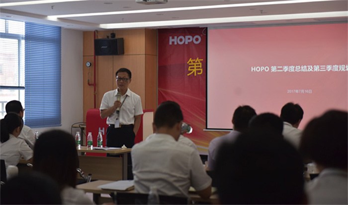 隨后,公司董事長針對季度運營情況,從產(chǎn)品、競爭對手、價格、渠道、團(tuán)隊、戰(zhàn)略角度對公司上半年的工作進(jìn)行解剖;闡述目前的成績與不足,對公司接下來的工作明確戰(zhàn)略布局。從整體業(yè)績情況來看,第二季度同比增長30%,沒有完成公司的要求目標(biāo),對于快速發(fā)展的HOPO來說,迎來了發(fā)展中的一次低谷,警醒我們?nèi)w員工加快步伐,練好內(nèi)功,是低谷也是蓄勢待發(fā)的機會。