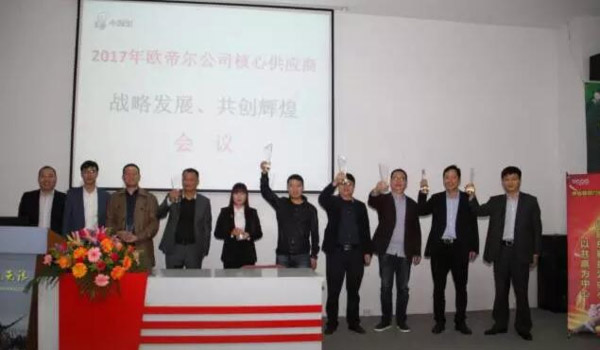 接下來(lái),歐帝爾公司為核心供應(yīng)商頒發(fā)了獎(jiǎng)杯,感謝各核心供應(yīng)商長(zhǎng)期以來(lái)的支持和幫助,也期望2017年共建戰(zhàn)略聯(lián)盟、實(shí)現(xiàn)共贏!
