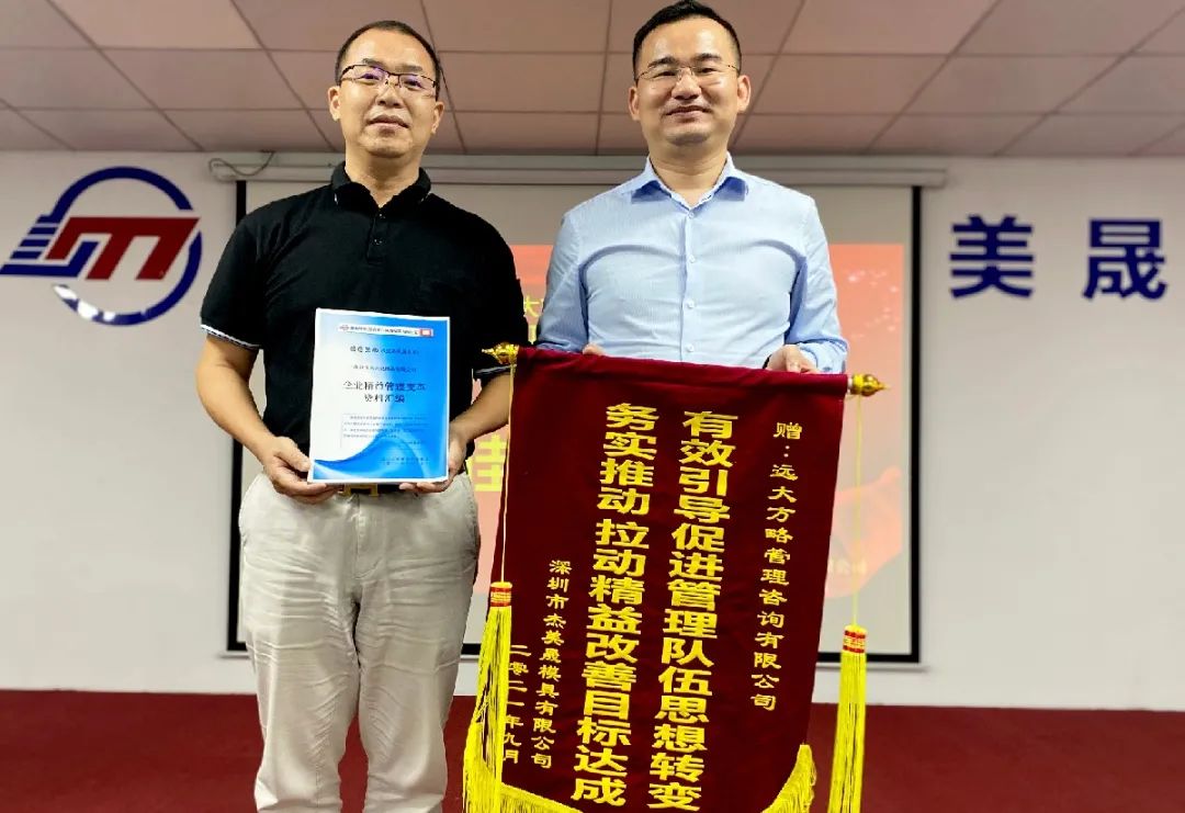 經過6個月的駐場管理咨詢輔導,咨詢項目圓滿完成,到了驗收項目成果的階段。9月25日,遠大方略與杰美晟一起開展精益管理咨詢項目總結會,總結咨詢過程中取得的成績與不足,在后續(xù)工作中持續(xù)不斷做出改進,并逐步完善科學管理模式,產生長期價值。