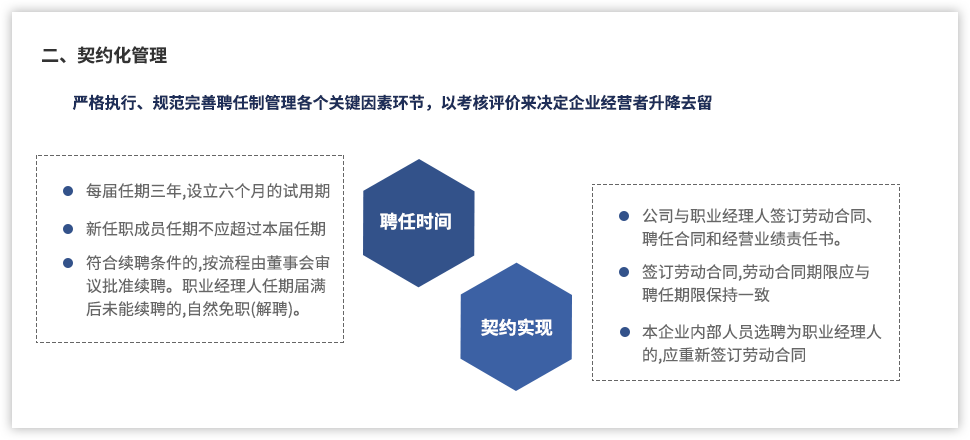 職業(yè)經(jīng)理人改革的核心目的是自上而下地為企業(yè)建立市場化的經(jīng)營機制和激勵約束機制,推動國有企業(yè)市場主體地位的落實,增強、釋放企業(yè)發(fā)展活力和潛力。遠(yuǎn)大方略認(rèn)為,職業(yè)經(jīng)理人改革是一個體系工程,其實施需要以公司治理結(jié)構(gòu)完善為先決條件,以人才發(fā)展體制機制改革為制度基礎(chǔ),以契約化管理和有效的考核、激勵、約束機制作為保障,涵蓋戰(zhàn)略引導(dǎo)、治理機制、崗位價值、薪酬策略、激勵前設(shè)、契約管理等多個方面。