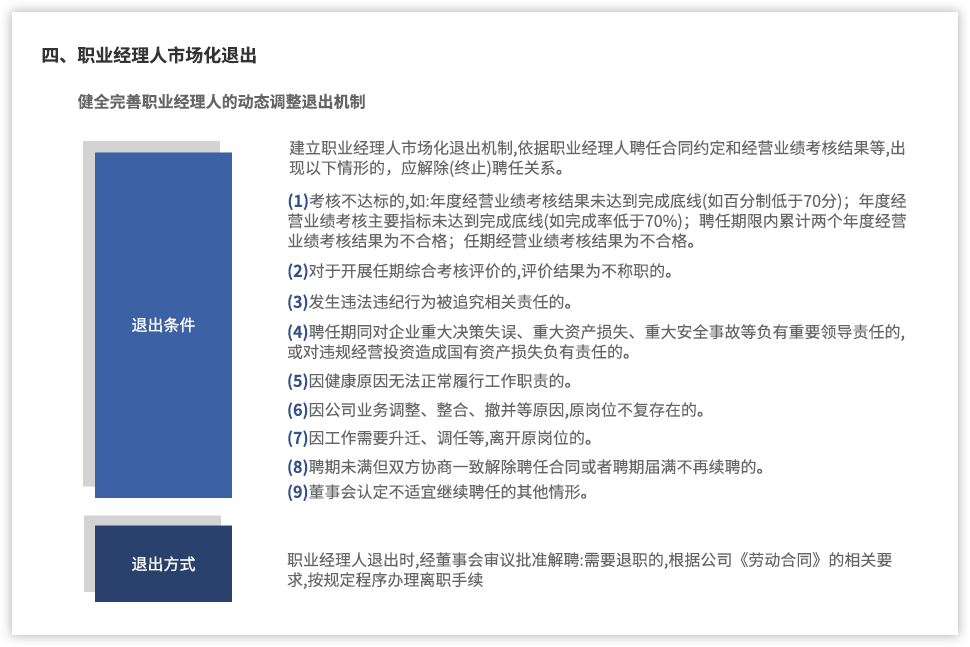 目前從中央到地方各層級政府均出臺了相關(guān)支持政策,部分重點企業(yè)也開展了相關(guān)試點改革,但在實際操作中卻普遍出現(xiàn)了職業(yè)經(jīng)理人“水土不服”、權(quán)責(zé)不清、目標(biāo)不明、激勵不足等問題,制約了職業(yè)經(jīng)理人改革效果的發(fā)揮。