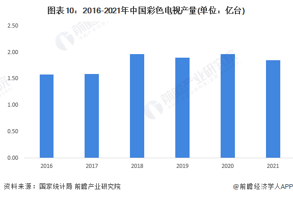 黑色電器中主要包括電視產(chǎn)品,根據(jù)國家統(tǒng)計局?jǐn)?shù)據(jù),2016-2021年中國彩色電視機(jī)產(chǎn)量呈現(xiàn)波動上升趨勢,2021年達(dá)到1.85億臺,較2019年減少約500萬臺,較2020年減少約1100萬臺。