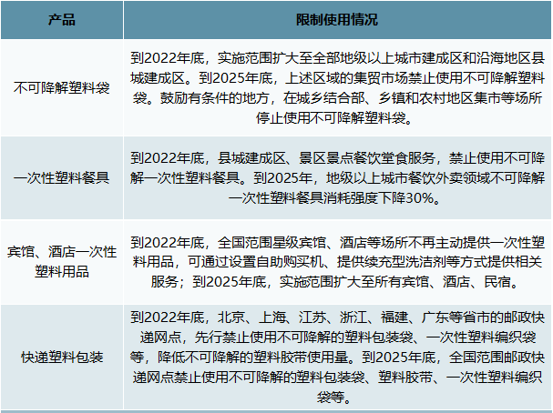 國家發(fā)展改革委、生態(tài)環(huán)境部印發(fā)《關(guān)于進一步加強塑料污染治理的意見》,明確提出了進一步加強塑料污染治理的“時間表”:2020年率先在部分地區(qū)、領(lǐng)域禁限生產(chǎn)、銷售和使用部分塑料制品。2022年一次性塑料制品消費量明顯減少,替代產(chǎn)品得到推廣。2025年塑料制品全環(huán)節(jié)管理制度建立,塑料污染得到有效控制。做好塑料污染治理,全國各省在展開協(xié)同作戰(zhàn),陸續(xù)推出的限塑禁塑時表。