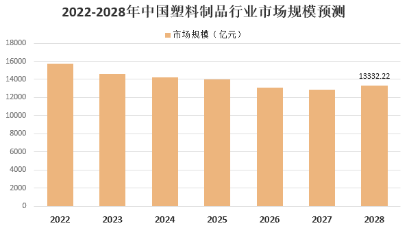 在政策限制下,傳統(tǒng)石化塑料制品行業(yè)將逐步收縮,預(yù)計2028年我國塑料制品市場規(guī)模下降至13332.22億元,行業(yè)未來幾年市場規(guī)模發(fā)展趨勢預(yù)測情況如下: