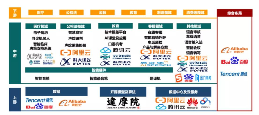 語音識別領域主要玩家包括蘋果、亞馬遜、科大訊飛、百度、阿里等。