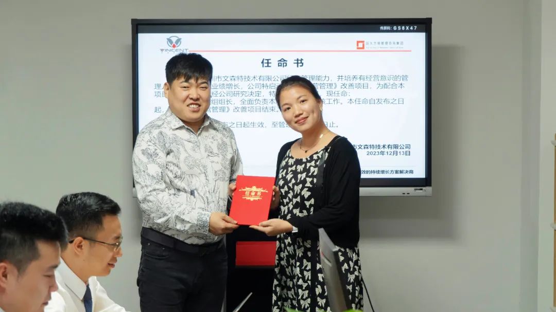 會上,吳總為項目老師頒發(fā)授權(quán)書,授予項目老師項目管理權(quán)利,同時為公司項目團隊成員頒發(fā)任命書,明確職責,強化責任,確保項目的有效落地。