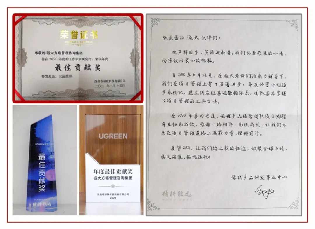 2018年,綠聯(lián)科技正處于高速發(fā)展期,為進(jìn)一步深化基礎(chǔ)管理,夯實(shí)企業(yè)發(fā)展內(nèi)功,綠聯(lián)科技引進(jìn)咨詢(xún)公司,因此與遠(yuǎn)大方略結(jié)緣,至此達(dá)成長(zhǎng)期戰(zhàn)略合作。2018年至今,綠聯(lián)科技與遠(yuǎn)大方略連續(xù)合作6年,先后合作10期咨詢(xún)項(xiàng)目。
