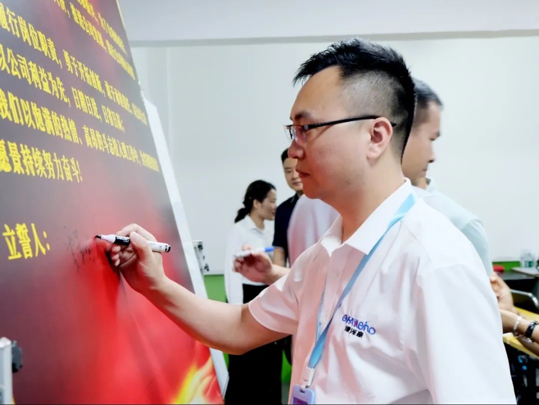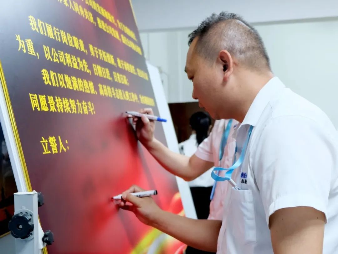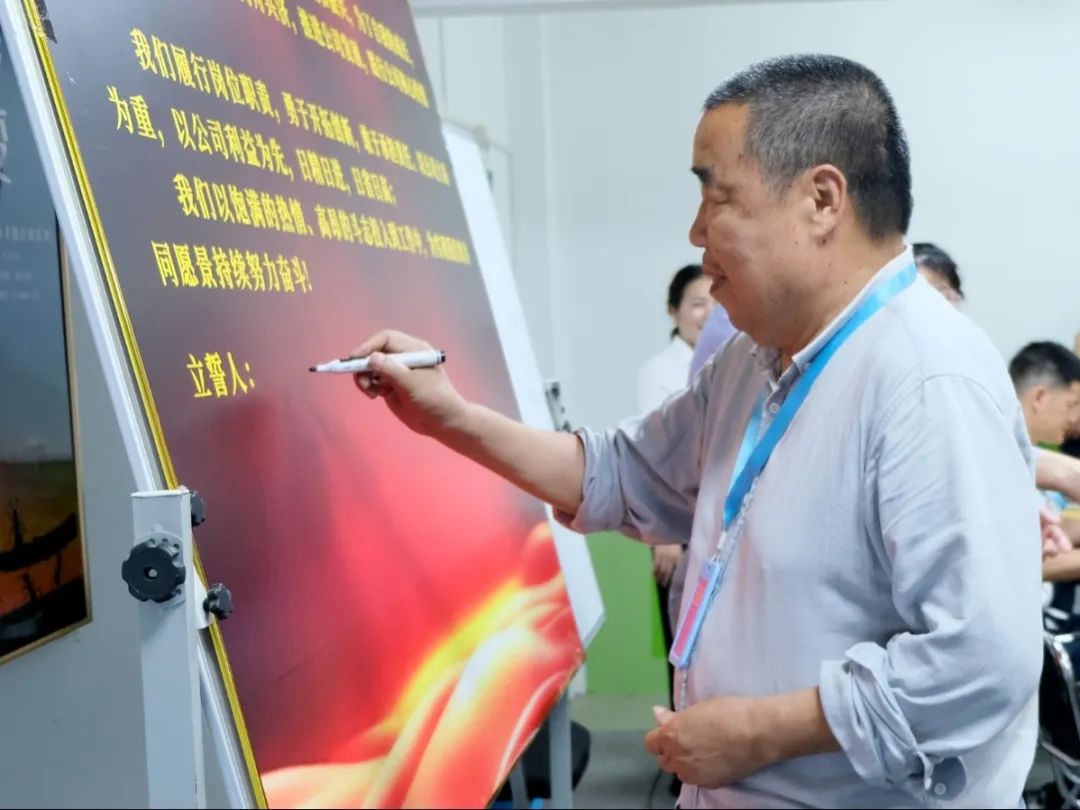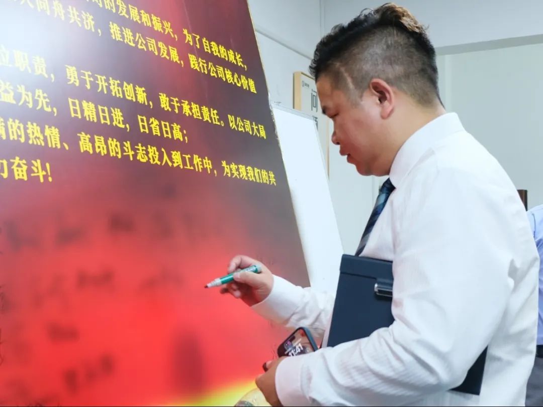 會(huì)上,萬總為項(xiàng)目老師頒發(fā)了授權(quán)書和聘書,帶領(lǐng)項(xiàng)目關(guān)鍵人員在誓詞上簽字并集體宣誓,鼓勵(lì)大家和公司共同成長進(jìn)步。