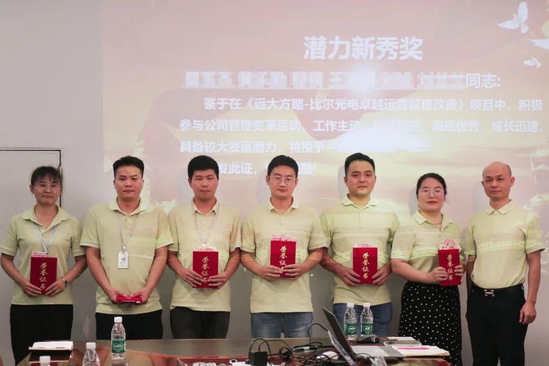 在一期改善過(guò)程中,對(duì)于表現(xiàn)優(yōu)秀的個(gè)人,也給予了表彰,比爾光電領(lǐng)導(dǎo)為表現(xiàn)突出的同事頒發(fā)了榮譽(yù)證書(shū)。