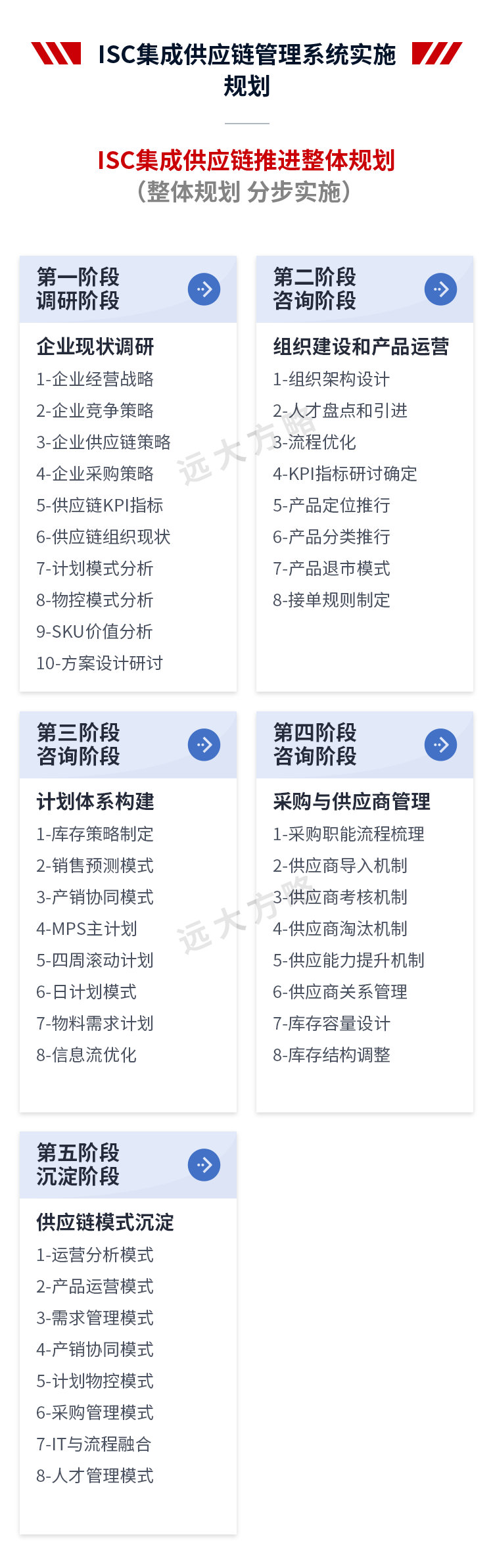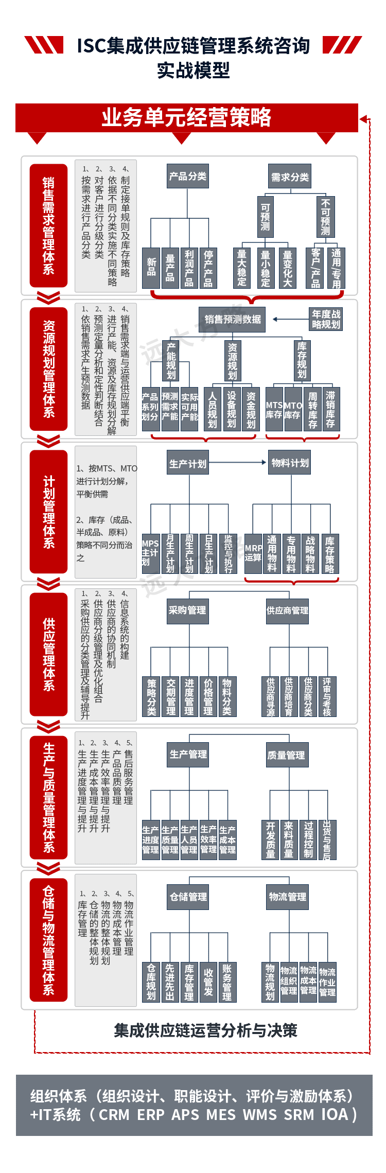 2、輔導(dǎo)模塊:推行ISC集成供應(yīng)鏈管理,主要圍繞產(chǎn)品運(yùn)營(yíng)管理、接單規(guī)則和庫(kù)存管理、銷售預(yù)測(cè)管理、S&OP管理、公司計(jì)劃模式優(yōu)化、物料管理體系等