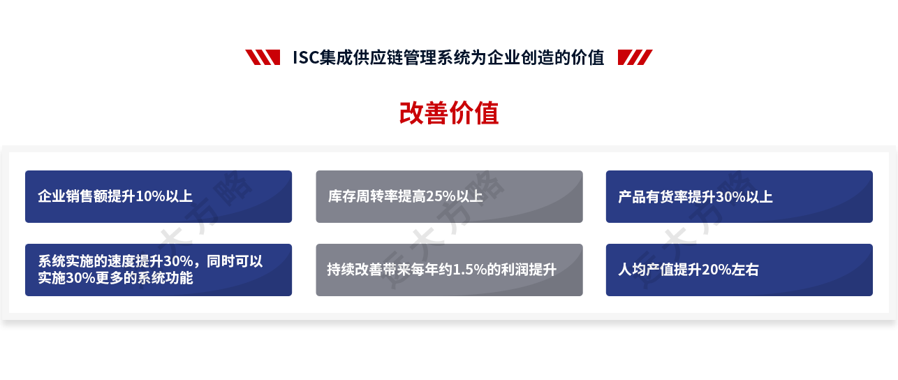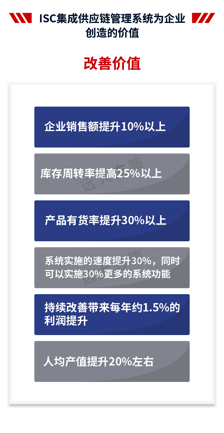 3、數(shù)據(jù)增長(zhǎng):打造高效供應(yīng)鏈咨詢項(xiàng)目,通過提高交付的可靠性與靈活性,提升客戶的滿意度;通過降低庫(kù)存、減少生產(chǎn)及分銷的費(fèi)用,降低公司成本;通過流程優(yōu)化、消弭異常事件,提升企業(yè)整理的流程品質(zhì)。實(shí)現(xiàn):人均產(chǎn)值提升22%,訂單交付及時(shí)率提升33%,供應(yīng)鏈周期縮短21%,庫(kù)存周轉(zhuǎn)速率提升23%,供應(yīng)鏈響應(yīng)速度提升32%。