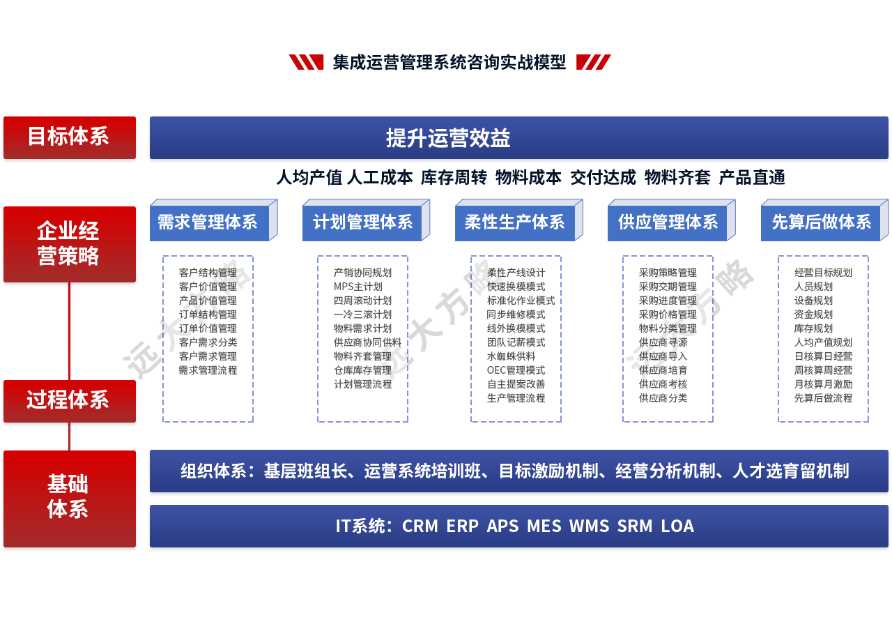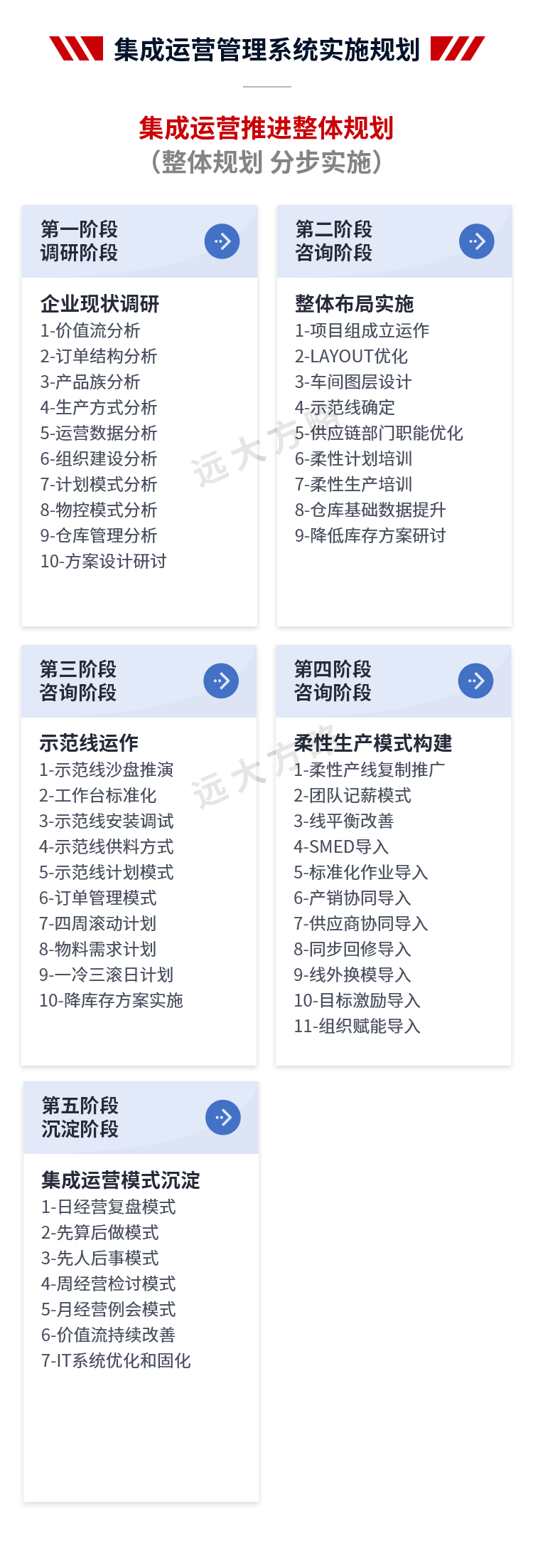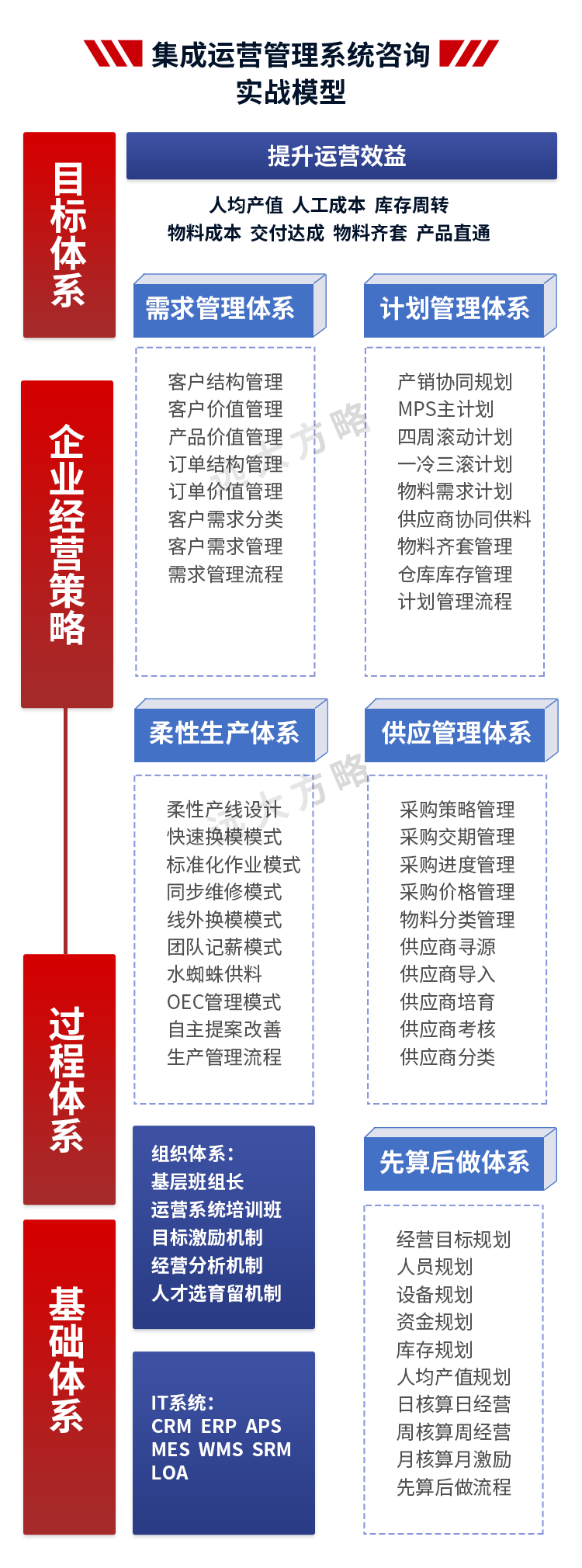 2、輔導(dǎo)模塊:推行卓越運營管理,主要圍繞經(jīng)營管理中心建立、計劃信息鏈與組織運作信息鏈構(gòu)建、精益生產(chǎn)模式優(yōu)化等