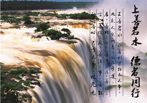 “上善若水。水善利萬物而不爭,處眾人之所惡,故幾于道。居,善地;心,善淵;與,善仁;言,善信;政,善治;事,善能;動,善時。” ——《道德經(jīng)》第八章