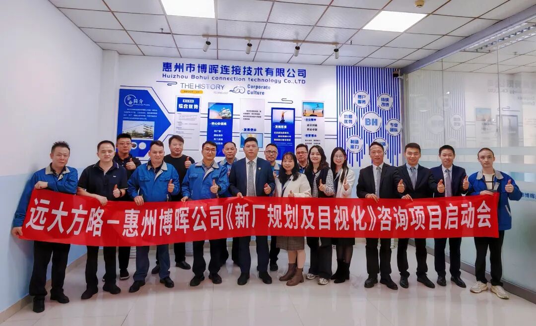 近日,惠州市博暉連接技術有限公司(以下簡稱“惠州博暉”)攜手遠大方略啟動《新工廠規(guī)劃及目視化》咨詢項目,該項目聚焦科學合理的生產(chǎn)線設計,將打破傳統(tǒng)生產(chǎn)模式束縛,實現(xiàn)生產(chǎn)流程的精準優(yōu)化;通過高效的車間布局優(yōu)化,減少物料搬運與人員走動距離,提升生產(chǎn)效率;導入先進智能倉儲系統(tǒng),實現(xiàn)庫存的精準管控與快速周轉(zhuǎn);同時優(yōu)化生產(chǎn)物流,確保物料供應及時、準確,降低物流成本。全面助力企業(yè)降本增效、提升產(chǎn)品質(zhì)量、縮短交付周期,為企業(yè)可持續(xù)發(fā)展注入強勁動力,開啟高質(zhì)量發(fā)展新篇章。